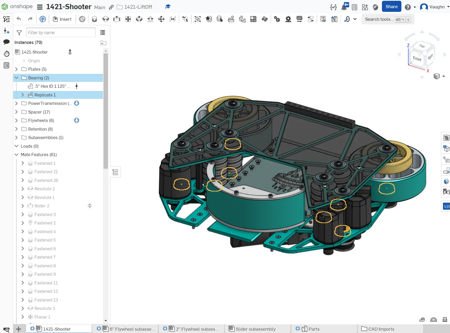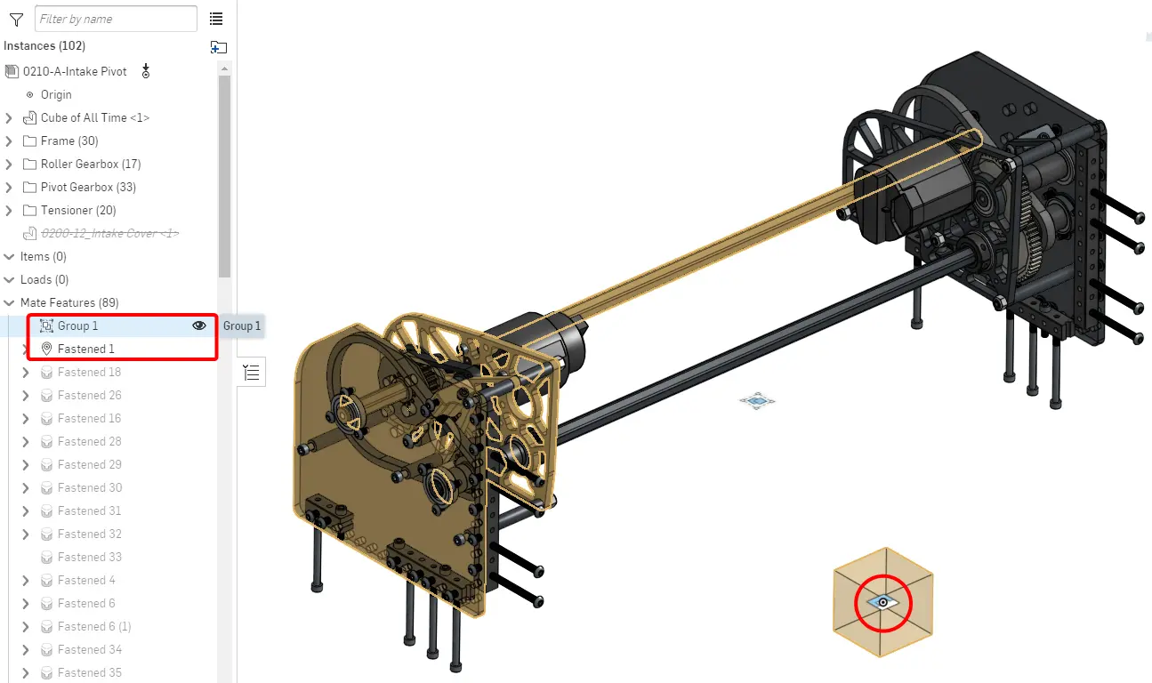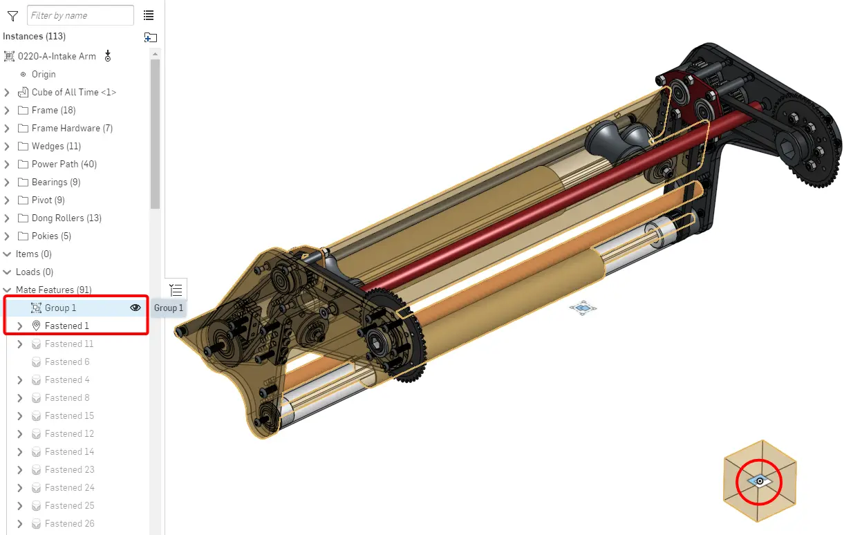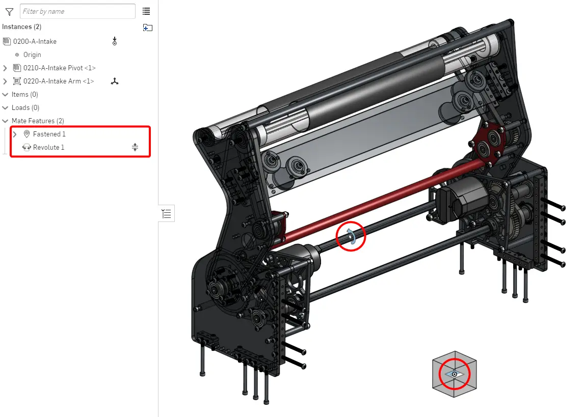 Repeat steps 2-7 of the process for all other rigid subassemblies, if applicable. This will result in each subassembly being rigid, with the origin cube fastened to the origin and all the parts in the same place as in the part studio. Each subassembly will also contain the mate connectors owned by the origin cube.