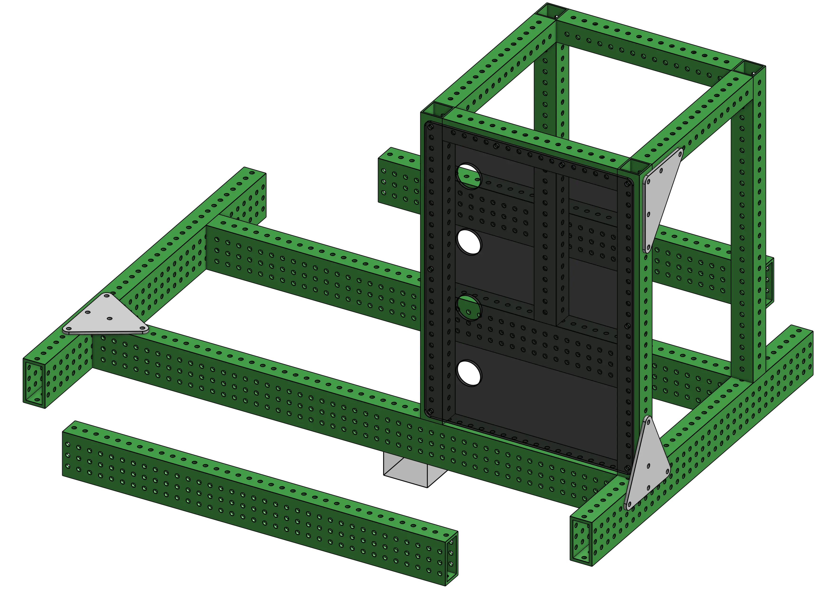 Insert the part studio from Section 2: Exercise 3 and assemble all of the plates and gussets together. Add the rest of the gussets, the swerve modules, rivets, and bolts.
