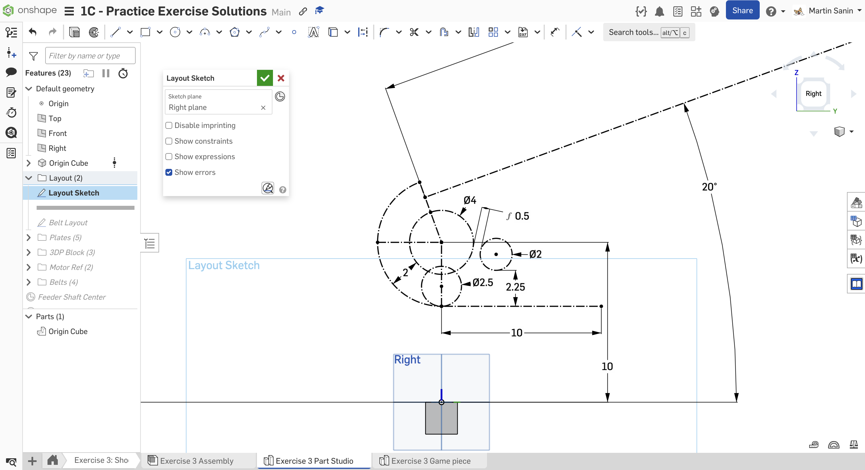 Navigate to the "Exercise #3 Part Studio" tab in your copied document and follow the instructions in the slides to complete the part studio for this exercise.