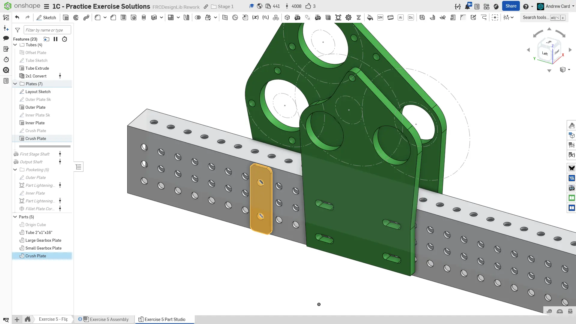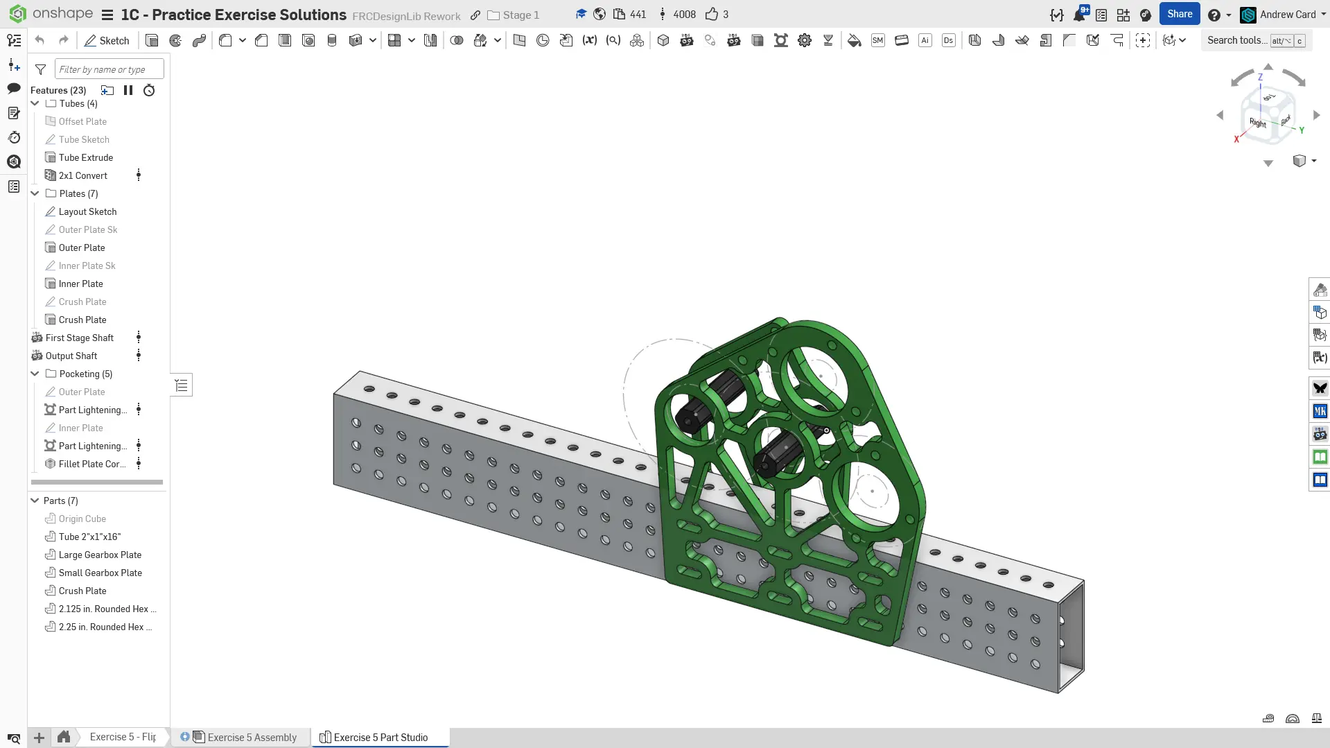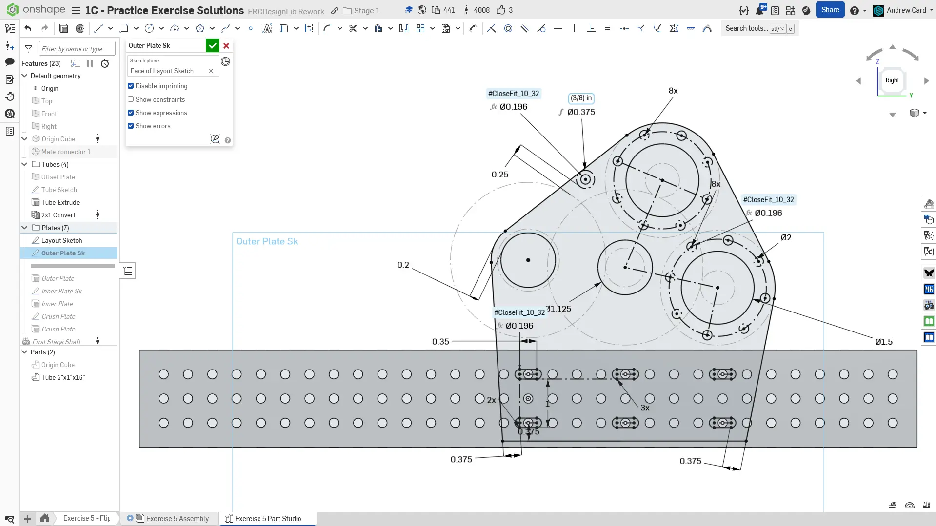 Navigate to the "Exercise #5 Part Studio" tab in your copied document and refer to the solution document to complete the part studio for this exercise. The following instruction slides only provide a general outline and some key details.