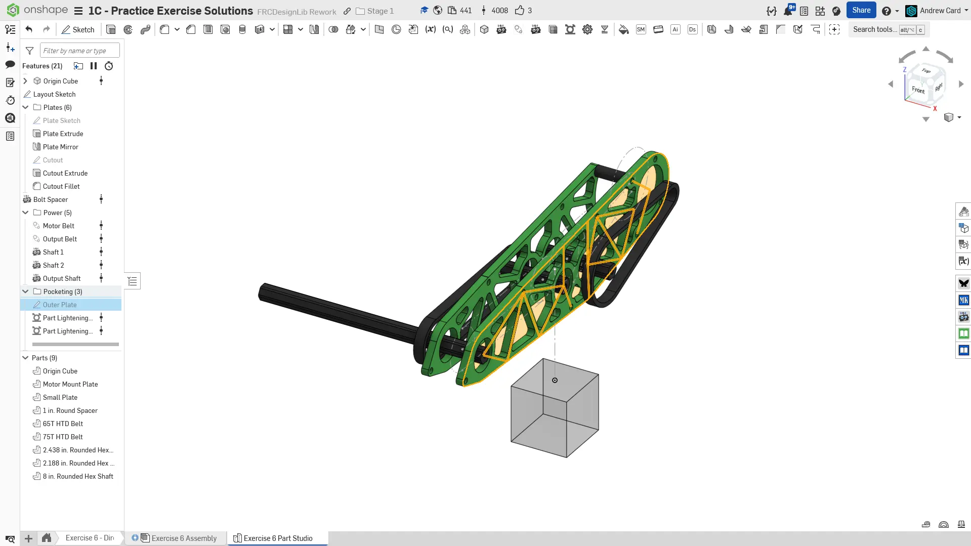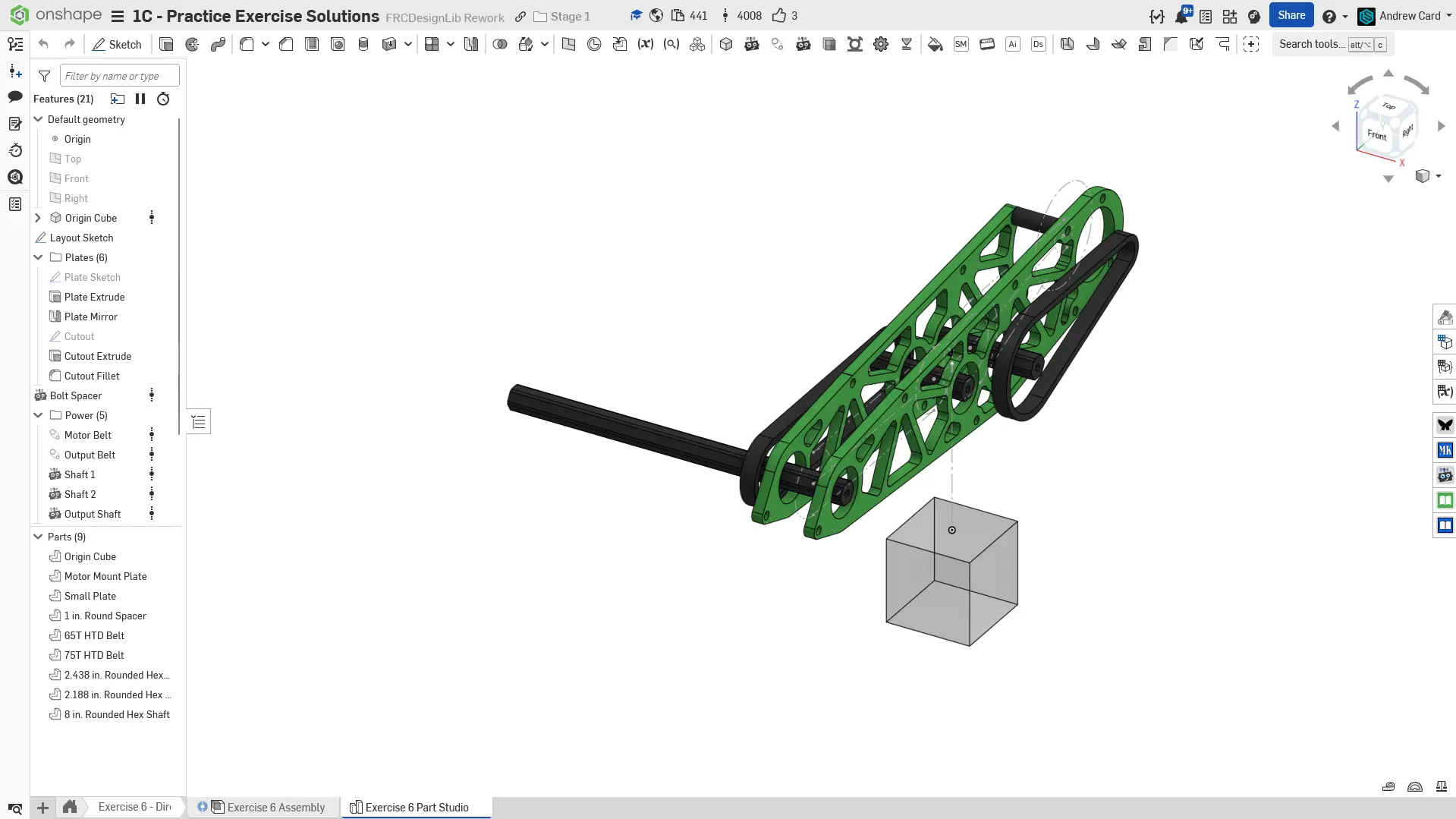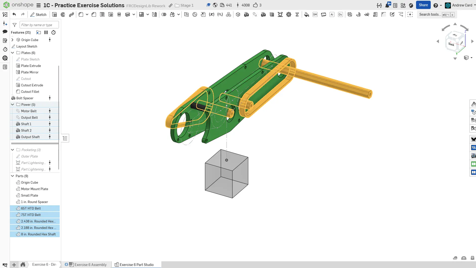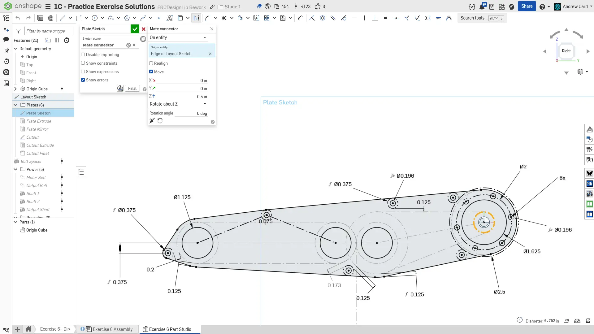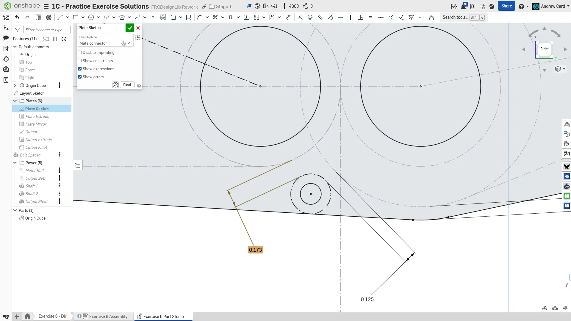 Navigate to the "Exercise #6 Part Studio" tab in your copied document and refer to the solution document to complete the part studio for this exercise. The following instruction slides only provide a general outline and some key details.