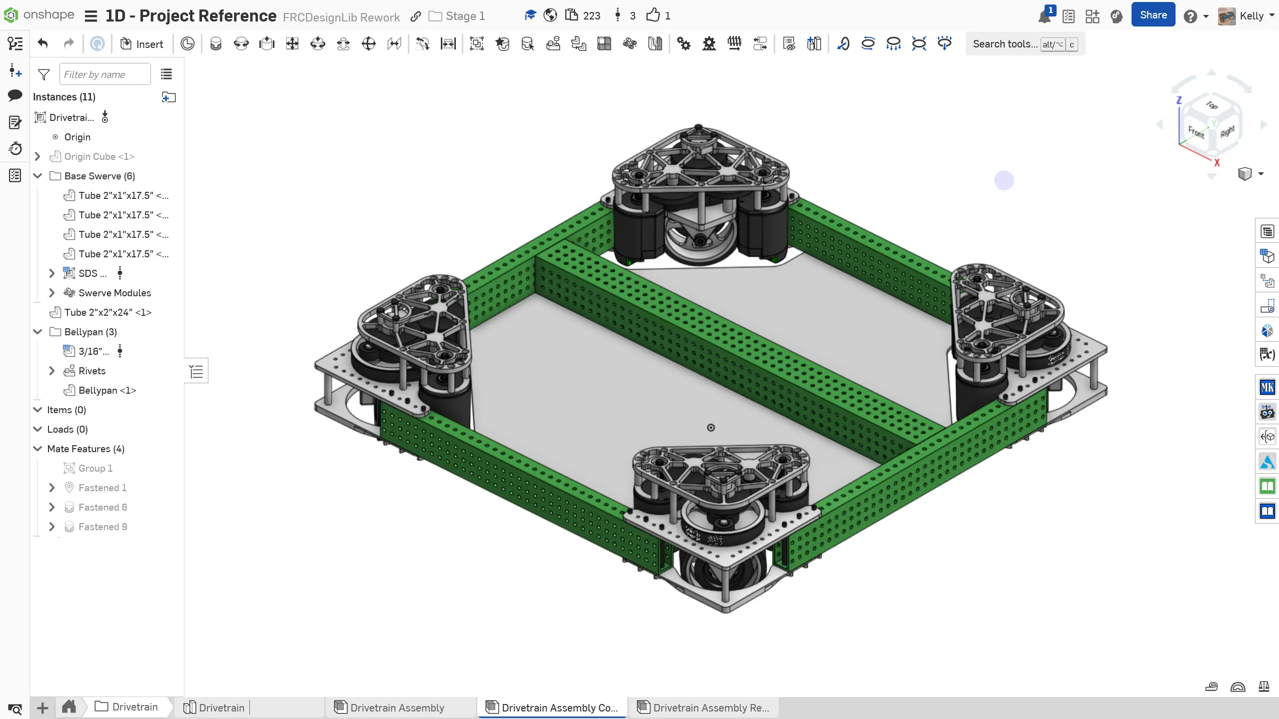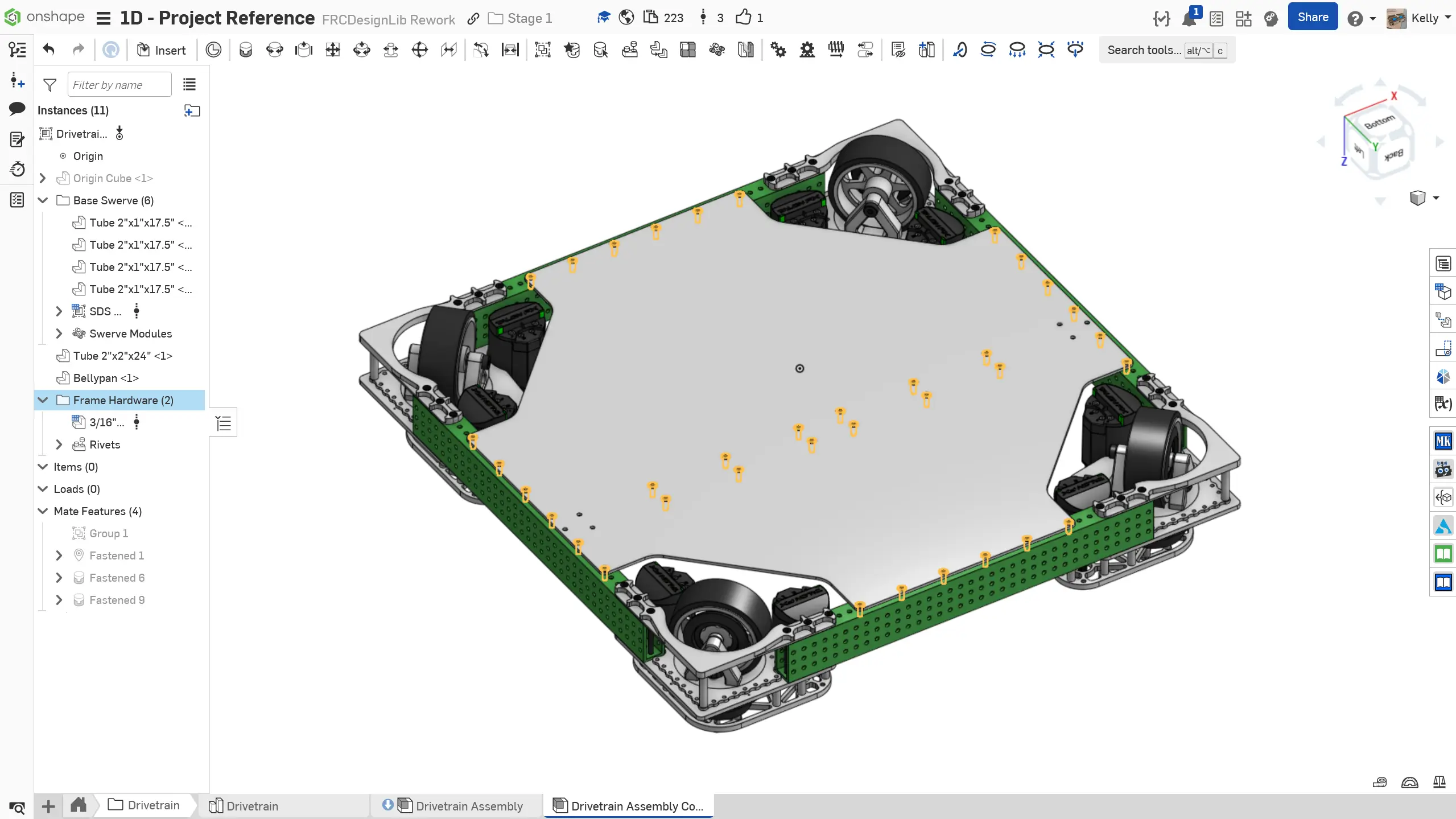 Start by creating a new assembly tab called Drivetrain Assembly in the Drivetrain folder. Follow the instructions in the slides to complete the assembly.