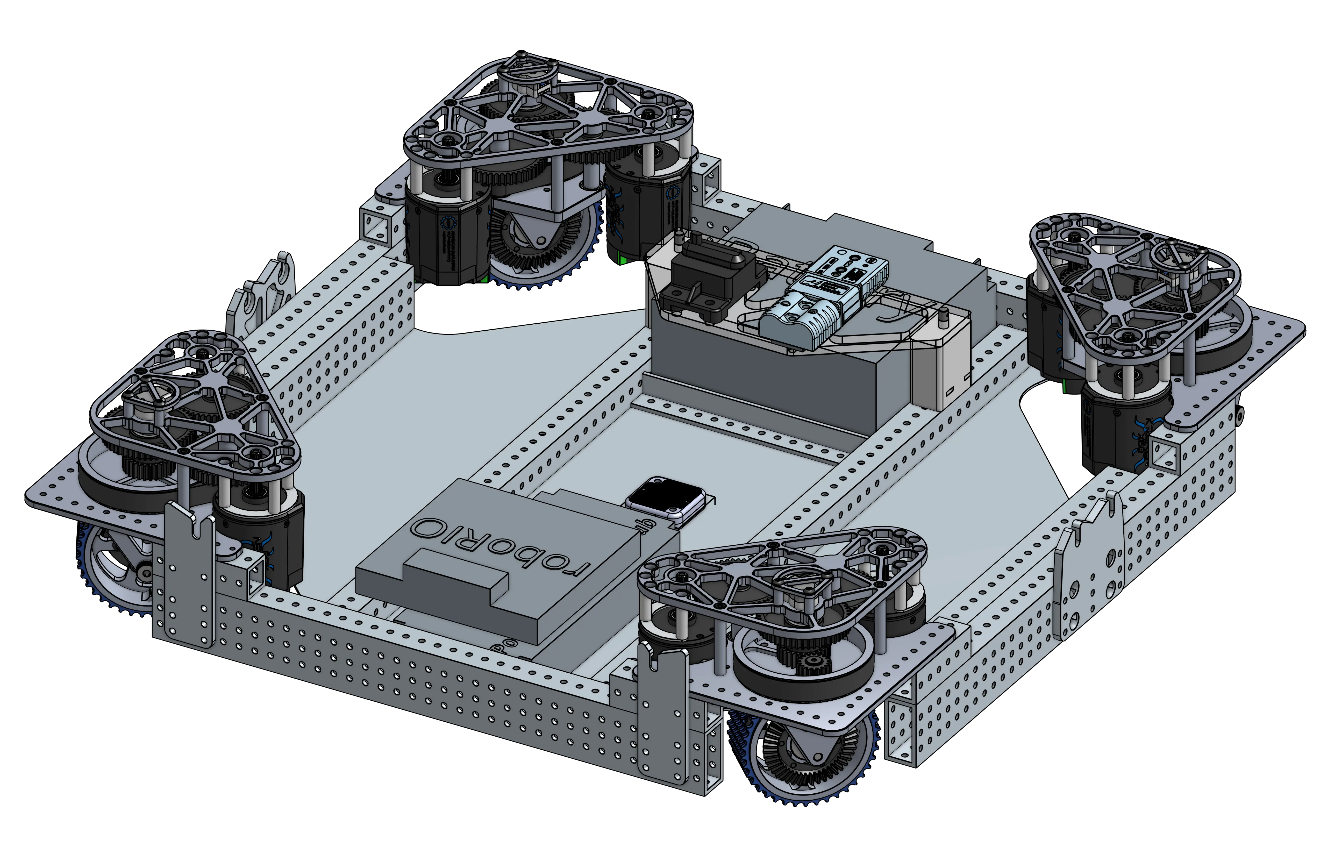 A drivebase featuring an inverted bellypan, or "brainpan" for electronics mounting