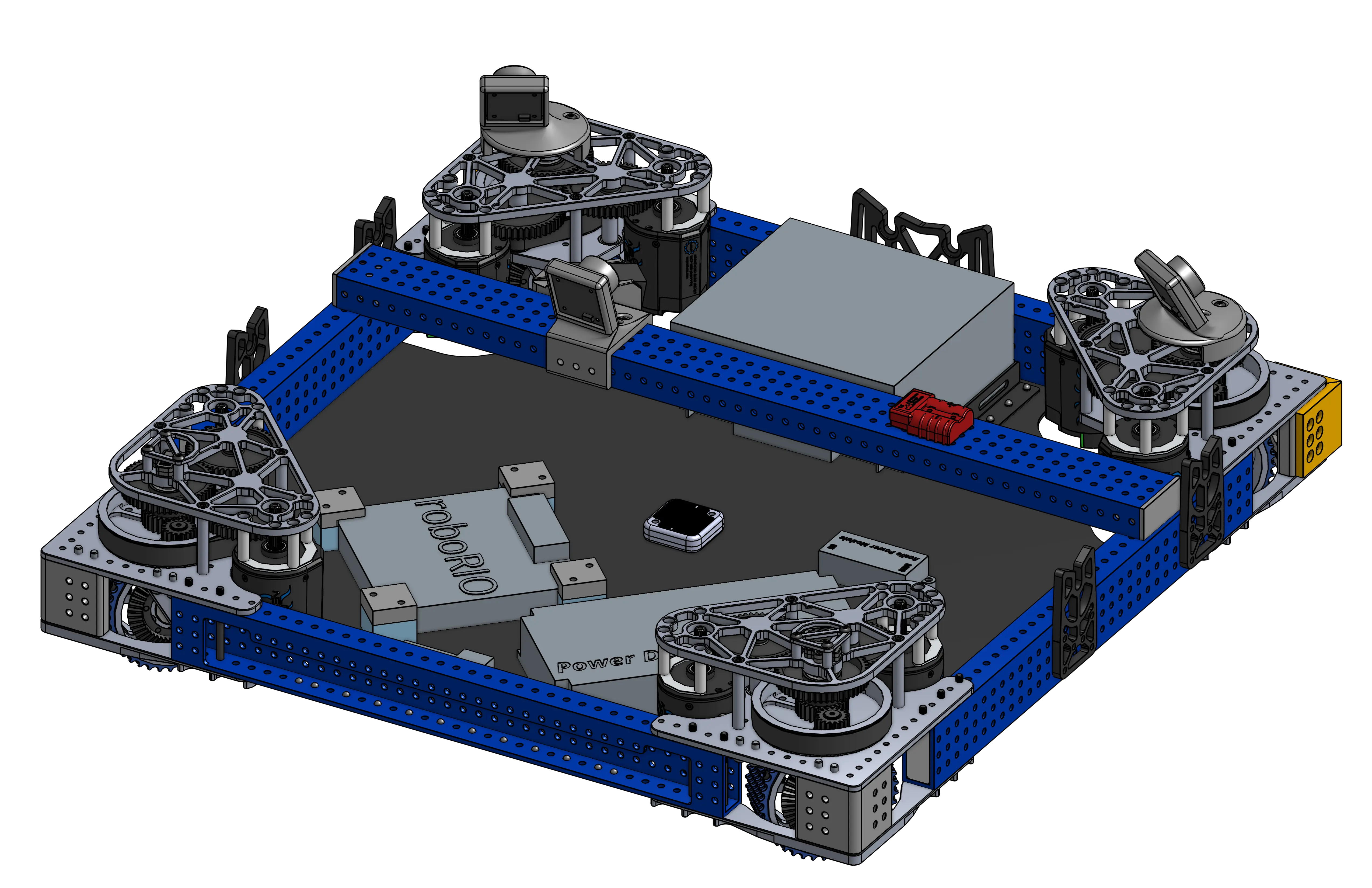 The drivebase is the single most important part of your robot, if you can't move, you can't score or play defense. All other mechanisms will also build on top of the drivebase. These examples can provide useful inspiration for electronics layout, bellypan design, and structural supports.