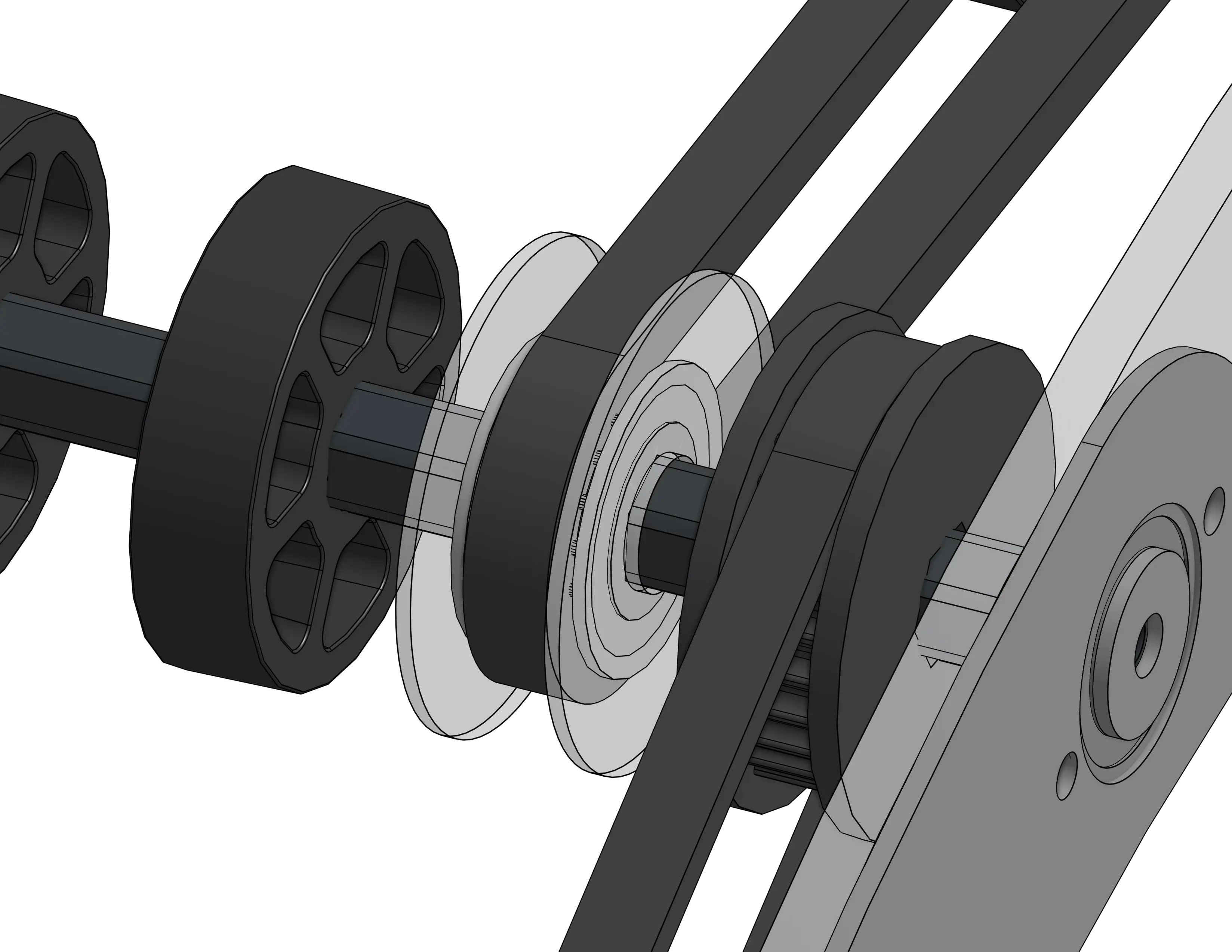 The first stage of rollers has two belts powering it for redundancy, just in case one belt is damaged.